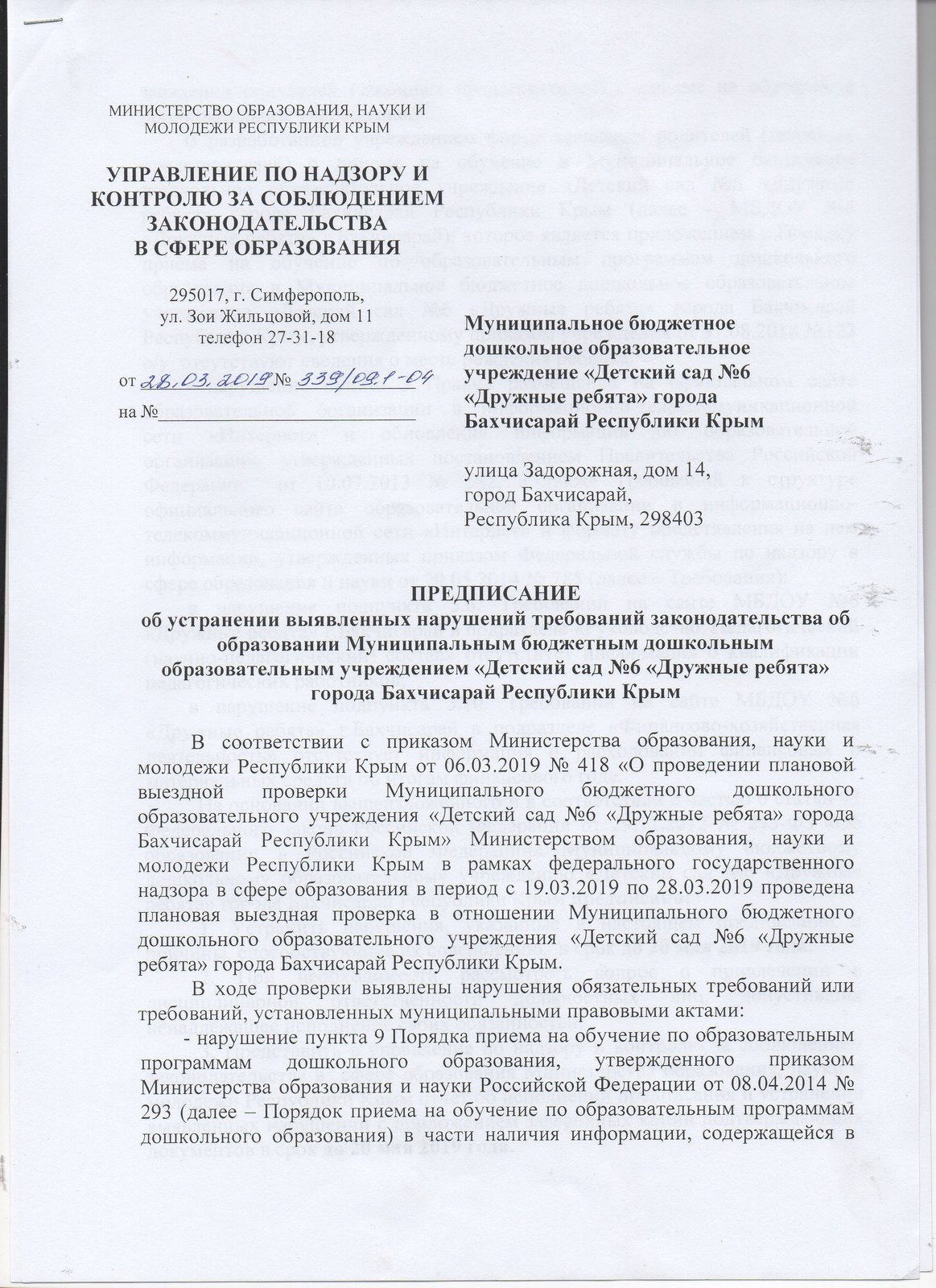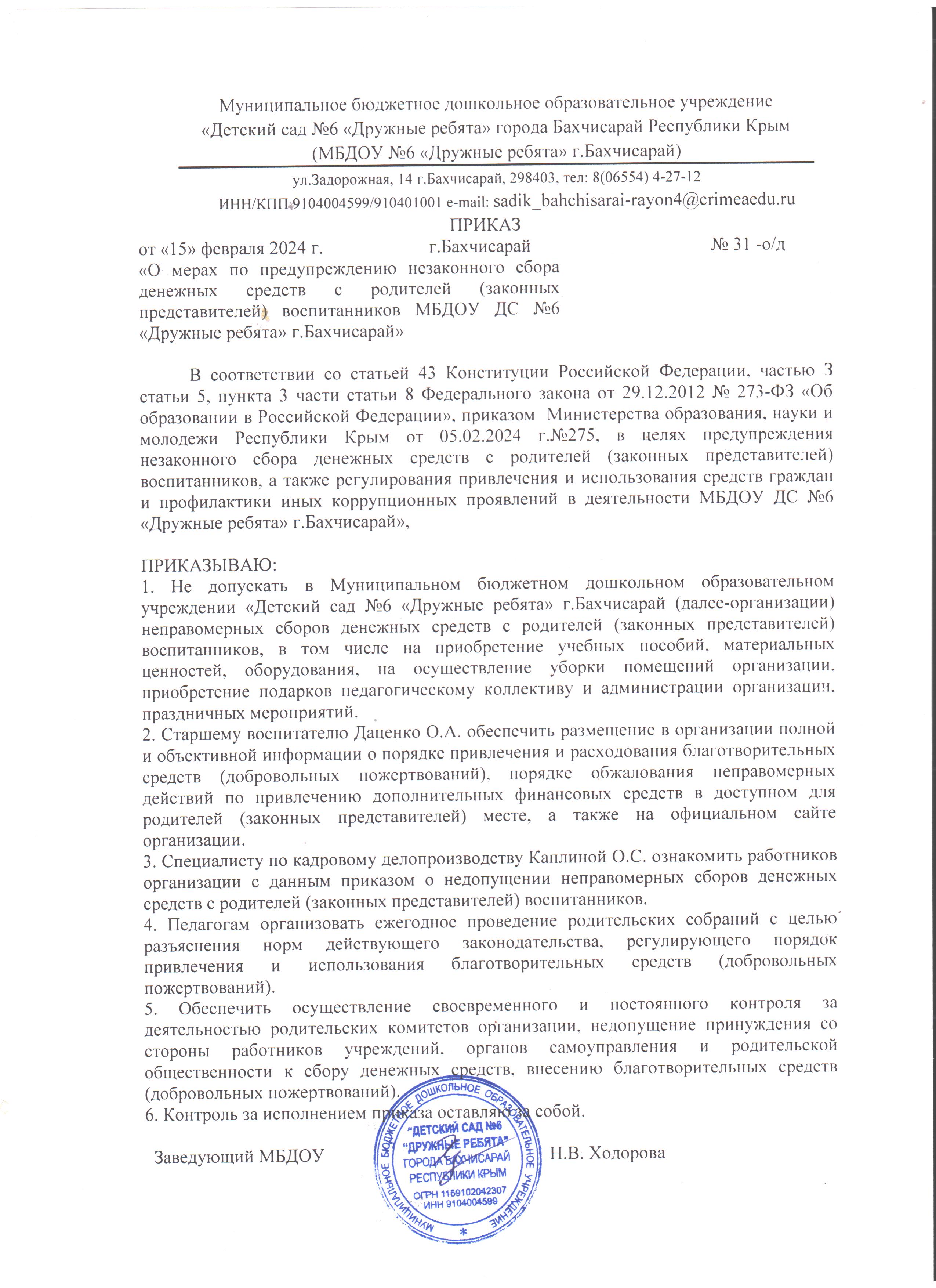 Муниципальное бюджетное дошкольное образовательное учреждение "Детский сад № 6 «Дружные ребята» г. Бахчисарай Республики Крым